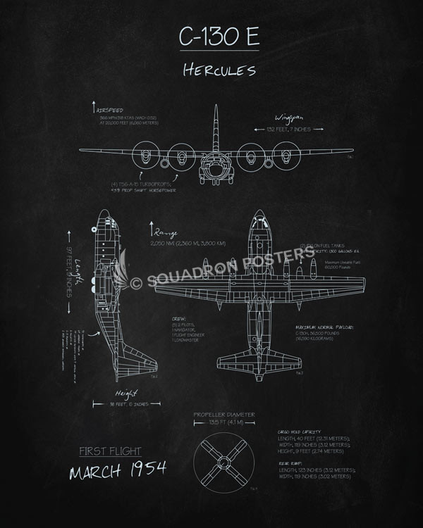 “C-130E Blackboard” vintage style military aviation travel poster art by – Squadron Posters!