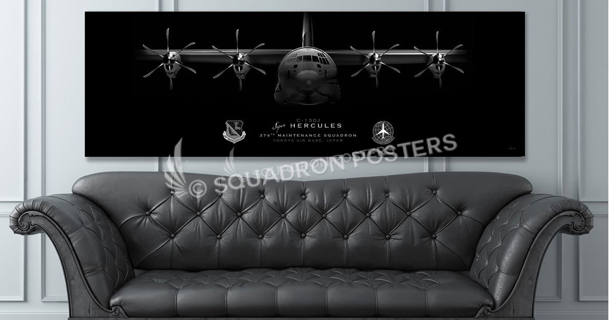 “C-130J 374th AMXS Jet Black Super Wide Canvas Print” aviation art by – Squadron Posters!