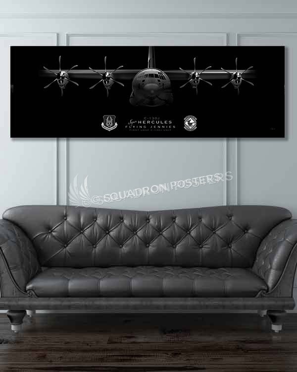 “C-130J 815 AS Jet Black Super Wide Canvas Print” aviation art by – Squadron Posters!