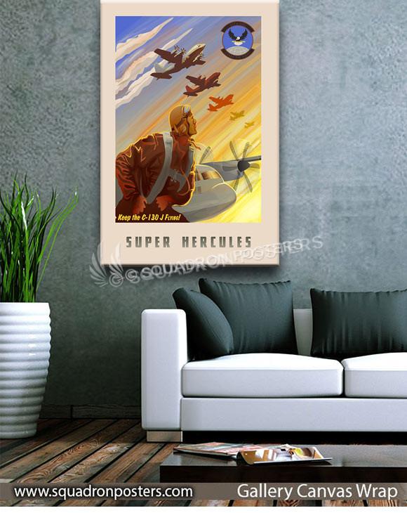 “C-130J Keep Em’ Flying 317 OSS” vintage style military aviation travel poster art by – Squadron Posters!