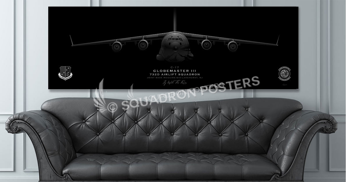 “C-17 732d Airlift Squadron (732 AS) Jet Black Super Wide Canvas Print found exclusively at – Squadron Posters!