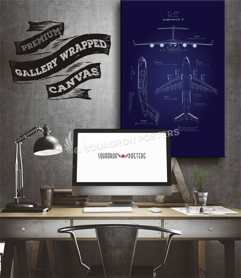 This vintage style military aviation “C-17 Blueprint Art” is dedicated to all the hard working men and women who fly, maintain and support the C-17 Globemaster III.