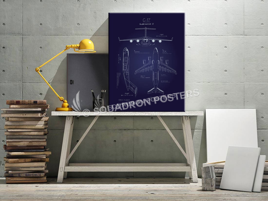 “C-17 Blueprint Art”, vintage style military aviation art by – Squadron Posters!
