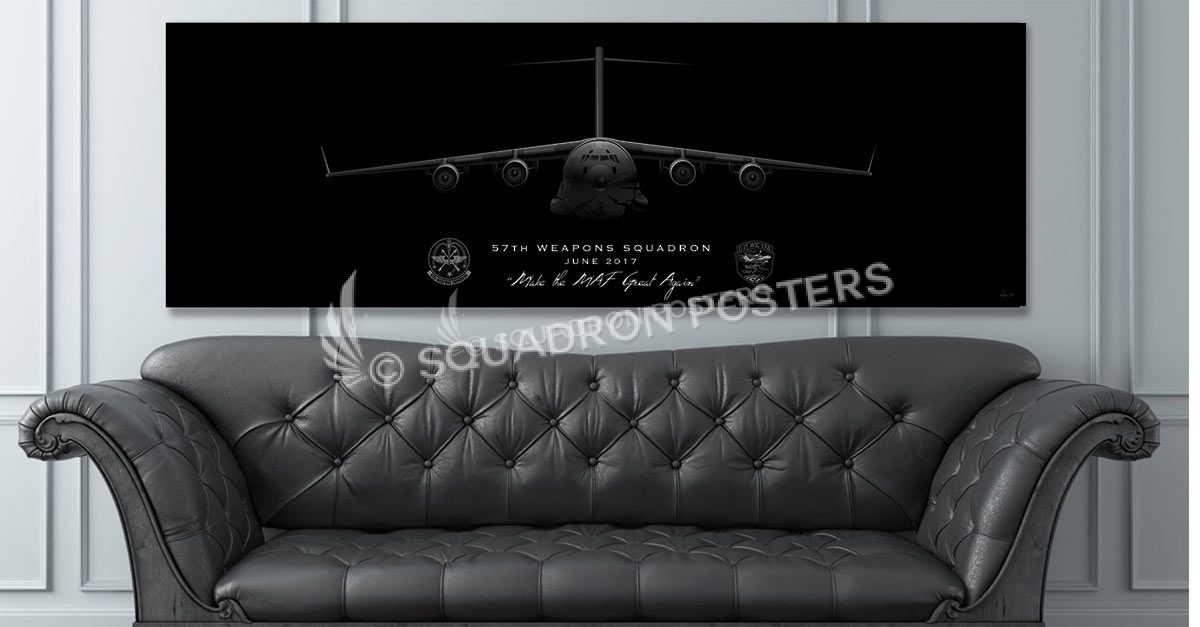 The 57th Weapons Squadron is the C-17 geographically separated unit of the USAF Weapons School. It is currently in a transitional phase that entails a move from McGuire-Dix-Lakehurst, New Jersey to JB Lewis-McChord, Washington. This artwork is specific to C-17 Weapons Instructor Course, “Class 17A” – June 2017.