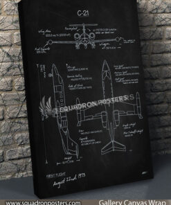 “C-21 Blackboard Art” military aviation blueprint art by – Squadron Posters!