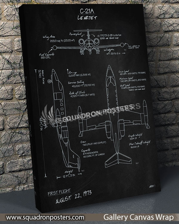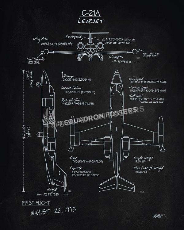 “C-21A Learjet Blackboard Art “ military aviation blueprint art by – Squadron Posters!