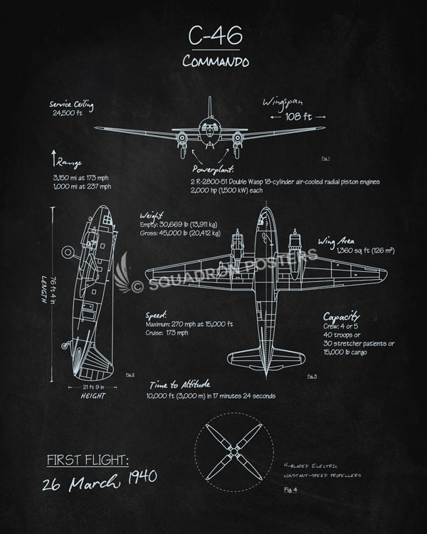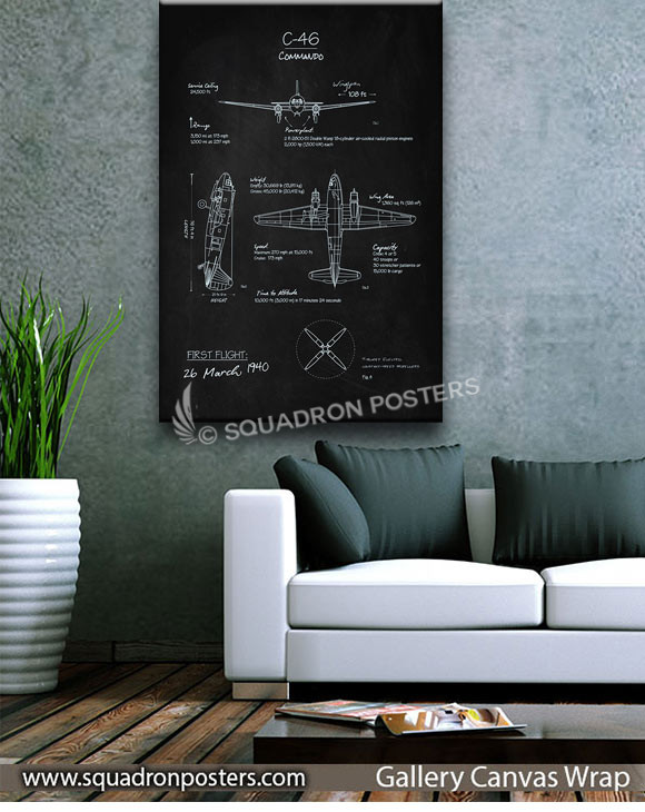 “C-46 Commando Blackboard” vintage style military aviation travel poster art by – Squadron Posters!