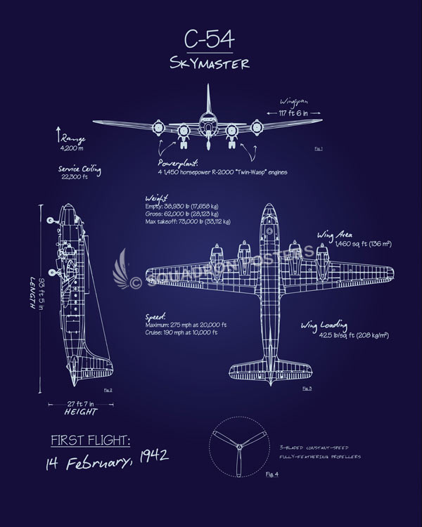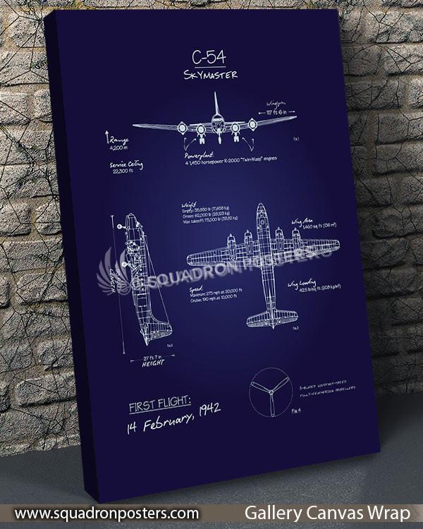 “C-54 Skymaster Blueprint” vintage style military aviation travel poster art by – Squadron Posters!