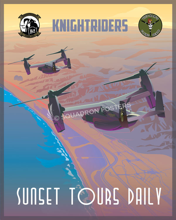 “Camp Pendleton MV-22 VMM-164” vintage style military aviation travel poster art by – Squadron Posters!