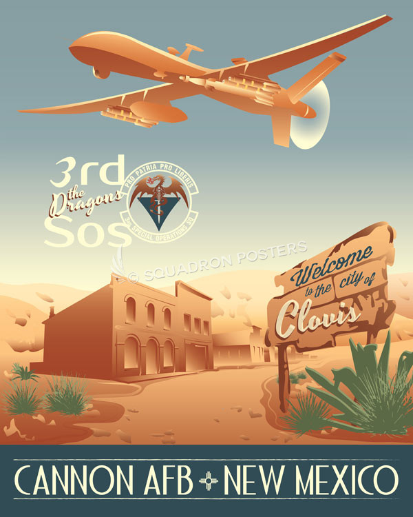 “Cannon AFB 3d SOS MQ-9” vintage style military aviation travel poster art by – Squadron Posters!