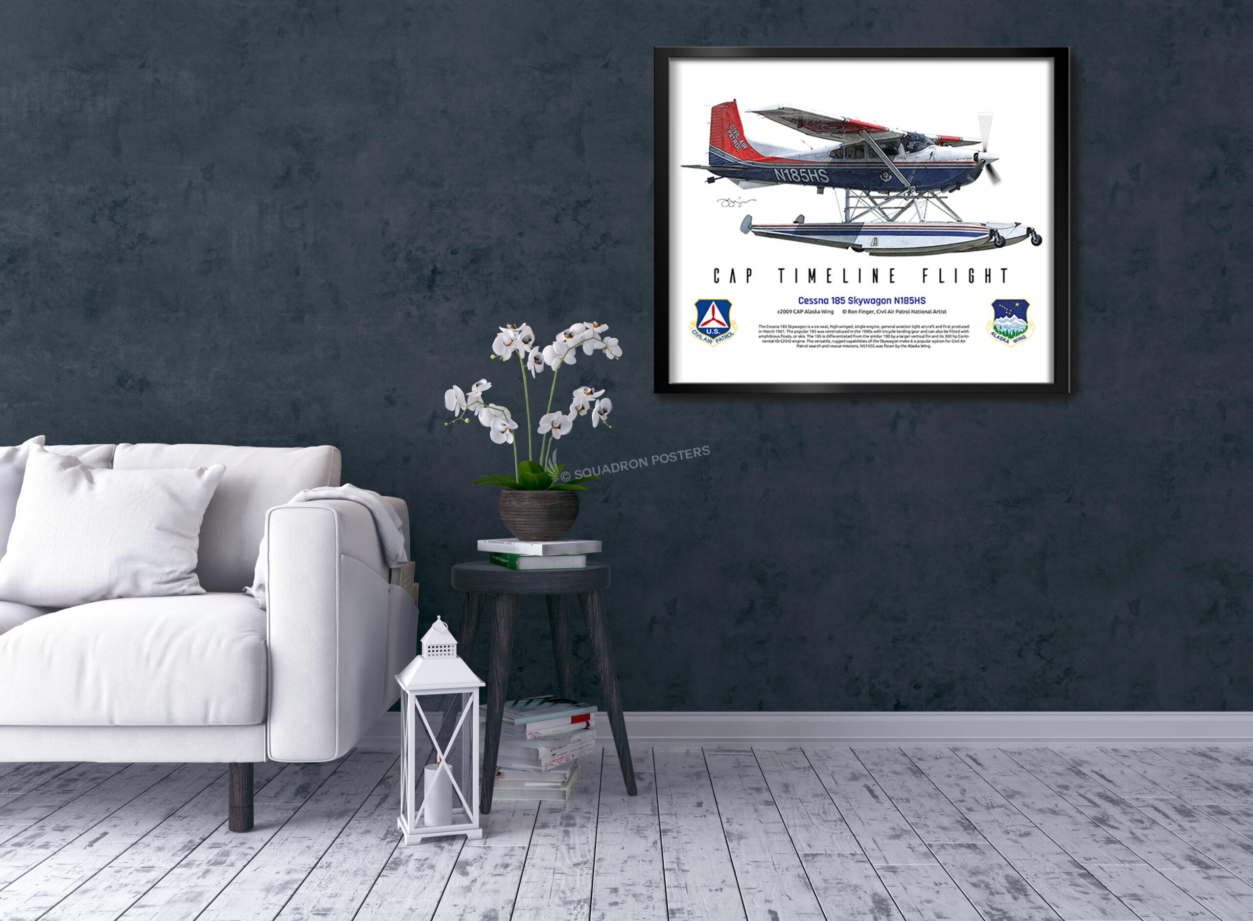 Cessna 185 Skywagon N185HS vintage style military aviation travel poster art by – Squadron Posters!