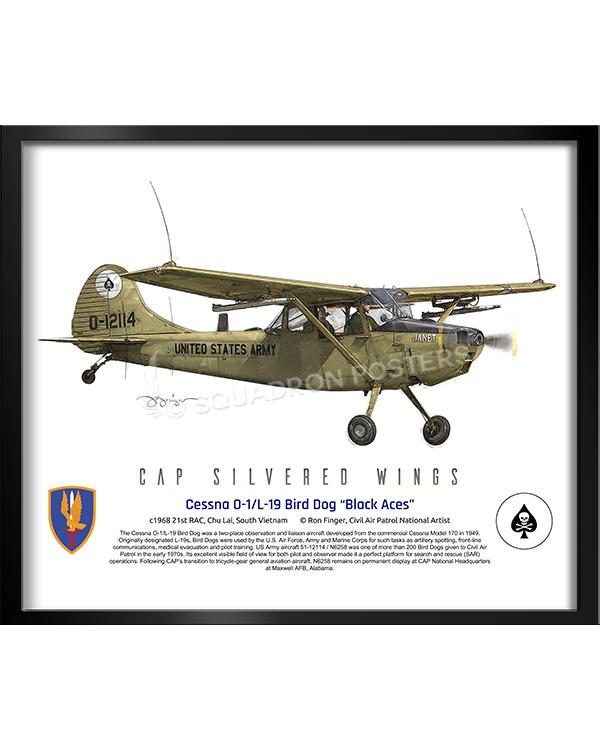 Cessna L-19A Bird Dog “Black Aces” vintage style military aviation travel poster art by – Squadron Posters!