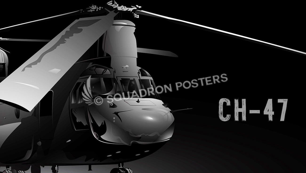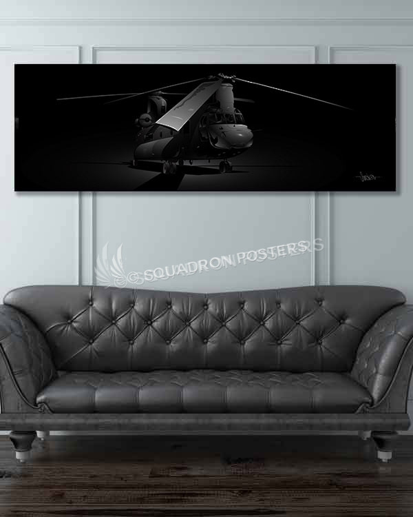 CH-47 Jet Black Super Wide Canvas Wrap with Floating Black Gallery Frame.