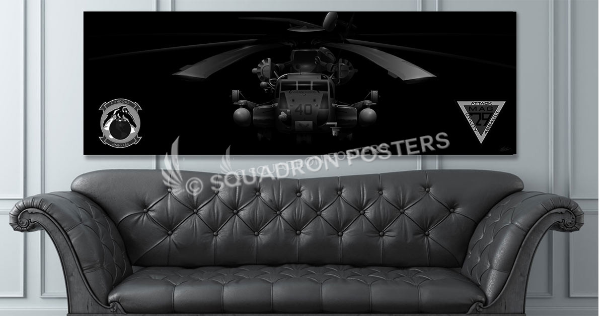 CH-53E HMH-464 Jet Black Super Wide Canvas Print with floating frame!