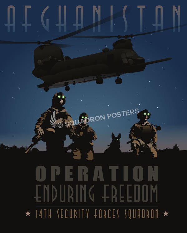 “Columbus AFB Afghanistan 14th SFS” vintage style military aviation travel poster art by – Squadron Posters!