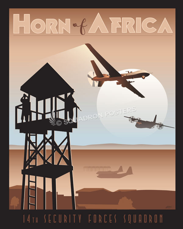 “Columbus AFB Horn of Africa 14th SFS” vintage style military aviation travel poster art by – Squadron Posters!