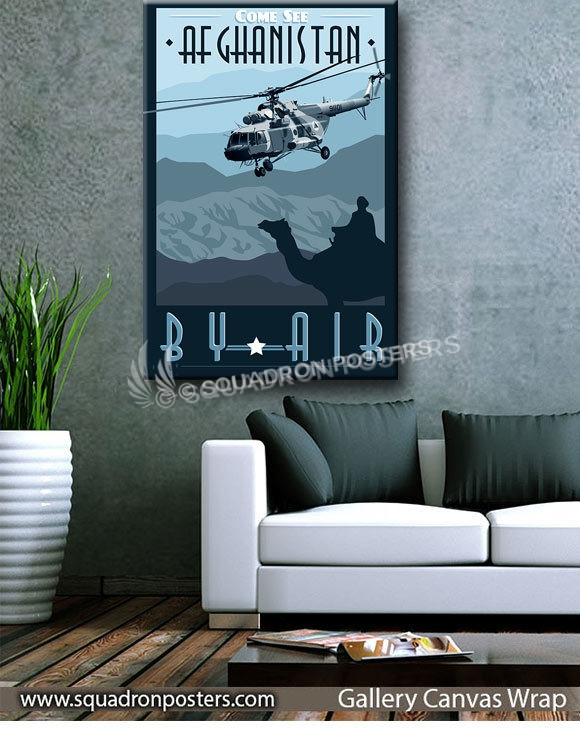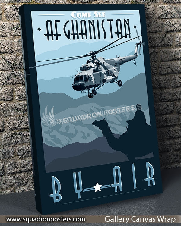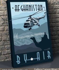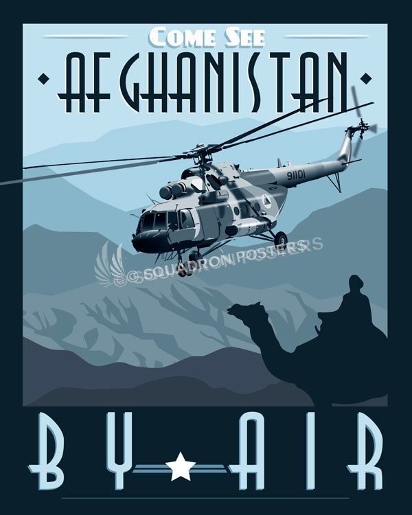 “Come See Afghanistan by Air -Mi-17” vintage style military aviation travel poster art by – Squadron Posters!
