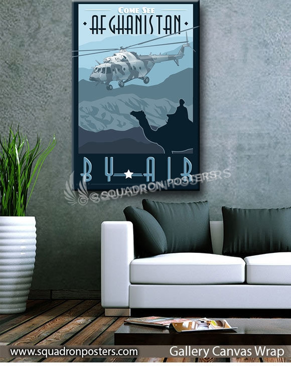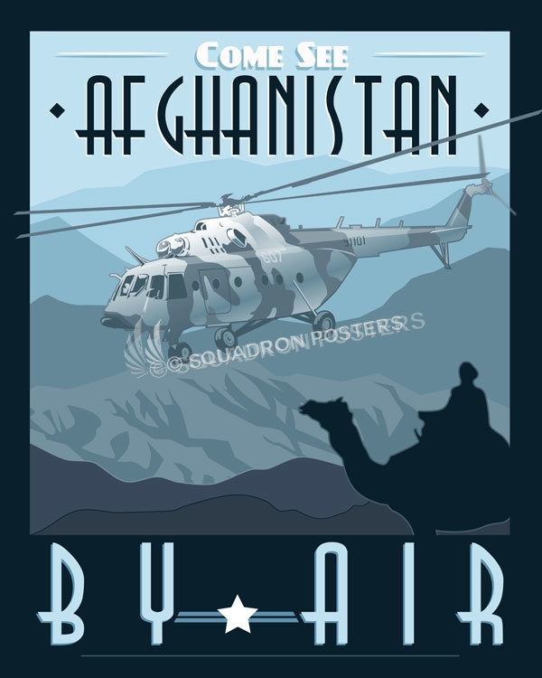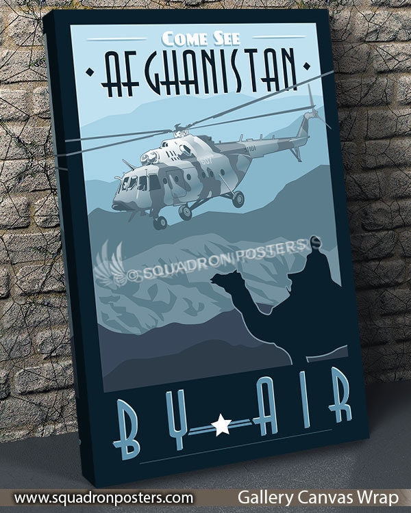“Come See Afghanistan by Helicopter” vintage style military aviation travel poster art by – Squadron Posters!