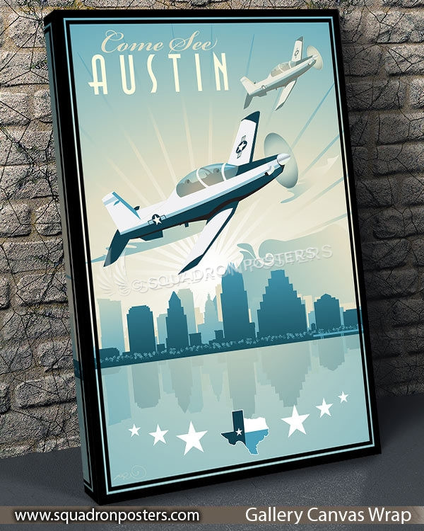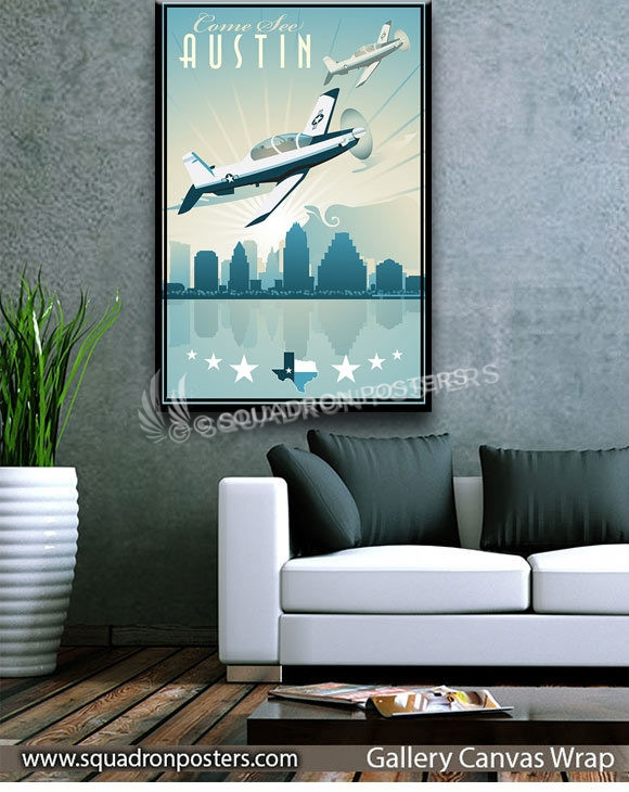 Come See Austin Texas In A T-6 Texan vintage style military aviation art by – Squadron Posters!