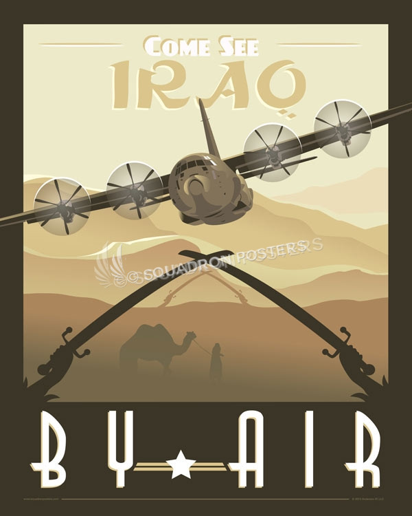 “Come See Iraq by Air – C-130J” vintage style military aviation art by – Squadron Posters!
