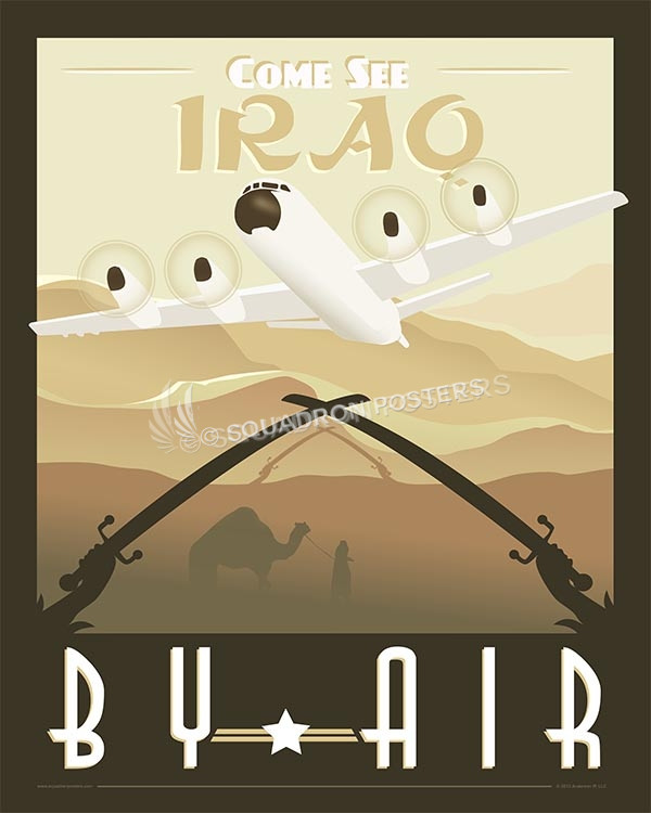 “Come See Iraq by Air – P-3 Orion” vintage style military aviation art by – Squadron Posters!