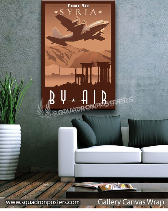 “Come See Syria by Air – C-130H” vintage style military aviation travel poster art found exclusively at – Squadron Posters!