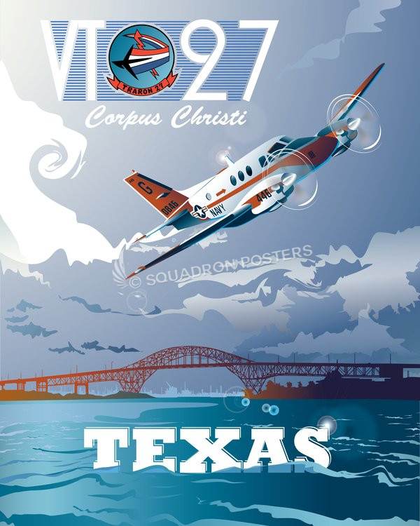 Training Squadron 27 (VT-27) was initially established on July 11, 1951 as Advanced Training Unit-B at Naval Air Station, Corpus Christi. The command moved to Naval Air Station, Kingsville in 1952 and again to Naval Air Station, New Iberia, Louisiana in 1960. It was there the squadron was redesignated VT-27. In July 1964, the ‘Boomers‘ were returned to Naval Air Station, Corpus Christi where they continue to be an important member of the community. One of just five Navy Primary training squadrons, VT-27 is one of two located on the Coastal Bend. In 1973, the squadron began a transition to the role of a Primary training squadron with the arrival on 1 August of the first T-28 Trojan. By 1 October 1973, the last Grumman TS-2A Tracker, had departed, signifying the end of the Advanced training role and the completion of the transition to Primary training. In August 1983, the squadron took delivery of the first T-34C Mentor aircraft. Since March 1984, when the last T-28 ever used for naval flight training departed, the T-34C was the mainstay of the Navy and Marine Corps Primary flight training program. Since early 2013, VT-27 began exclusive use of theT-6B for all primary flight training.