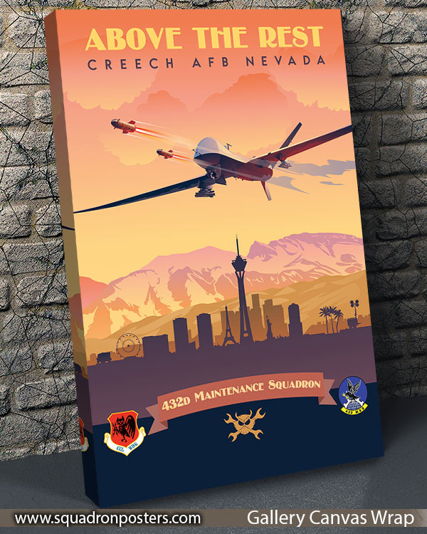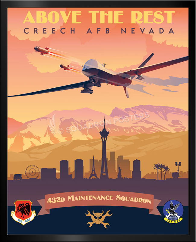 Creech AFB MQ-9 432d MXS vintage style military aviation travel poster art by – Squadron Posters!
