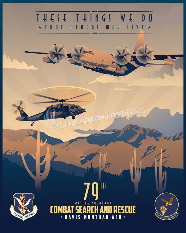 “Davis-Monthan AFB, 79th Rescue Squadron” vintage style aviation art by – Squadron Posters! (version 2)
