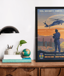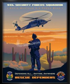 Davis-Monthan Air Force Base, located in Tucson, Arizona, is home to the 355th Wing and plays a key role in supporting combat missions, training operations, and aircraft maintenance. Known for its expansive aircraft storage facility, the base houses the Air Force’s “Boneyard,” where decommissioned military aircraft are stored and repurposed. The base supports a variety of units, including those focused on close air support, rescue operations, and electronic warfare. Its strategic location and mission diversity make Davis-Monthan AFB a vital hub for both Air Force operations and international joint exercises. Check out this stunning Davis Monthan AFB 943d SFS Art by – Squadron Posters!