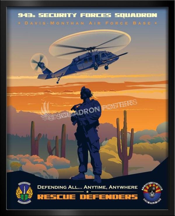 The 943d Security Forces Squadron (943d SFS), located at Davis-Monthan Air Force Base, Arizona, trains unit members to meet wartime mission requirements while providing support assistance to its active-duty counterparts. The Squadron deploys security forces personnel to provide Air Base defense, physical security, law enforcement and resource protection missions in any climate or location. The mission of all SFS Airmen is to protect, defend and fight to enable Air Force, Joint and Coalition forces.