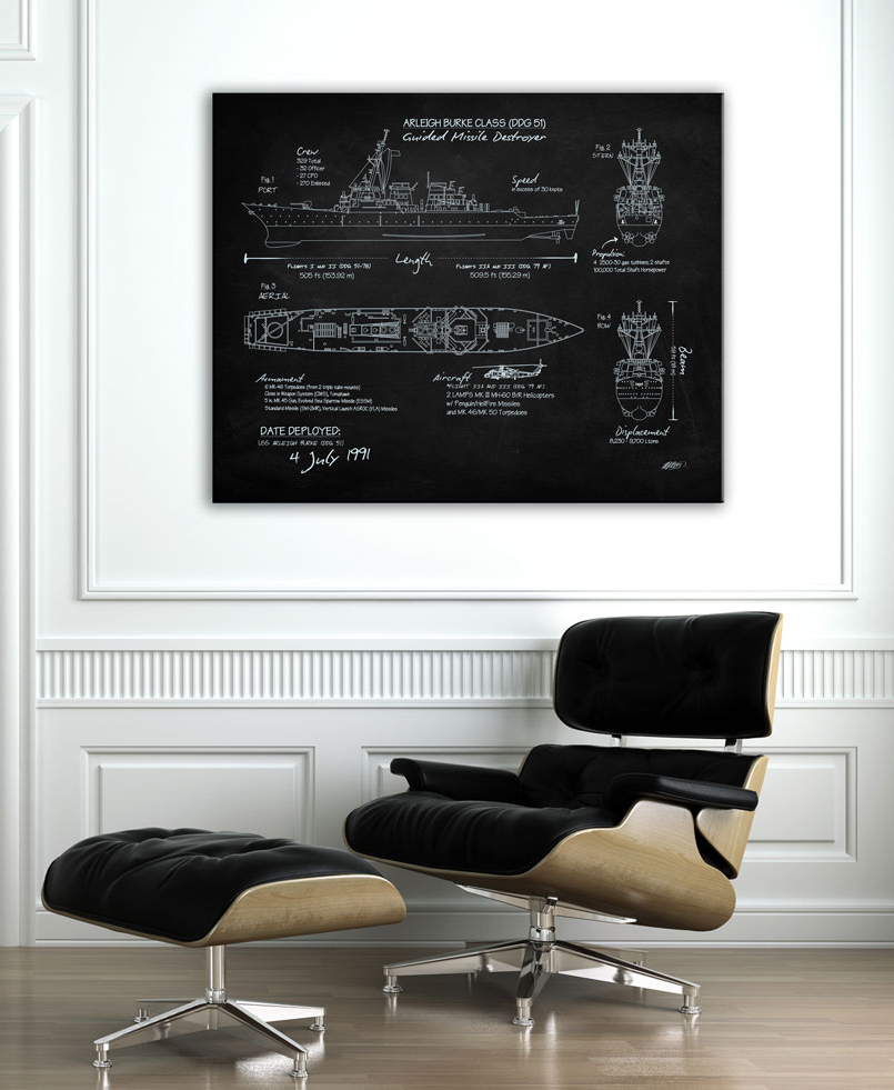 DDG-51 Arleigh Burke Class Destroyer Blackboard Canvas military naval art by – Squadron Posters!