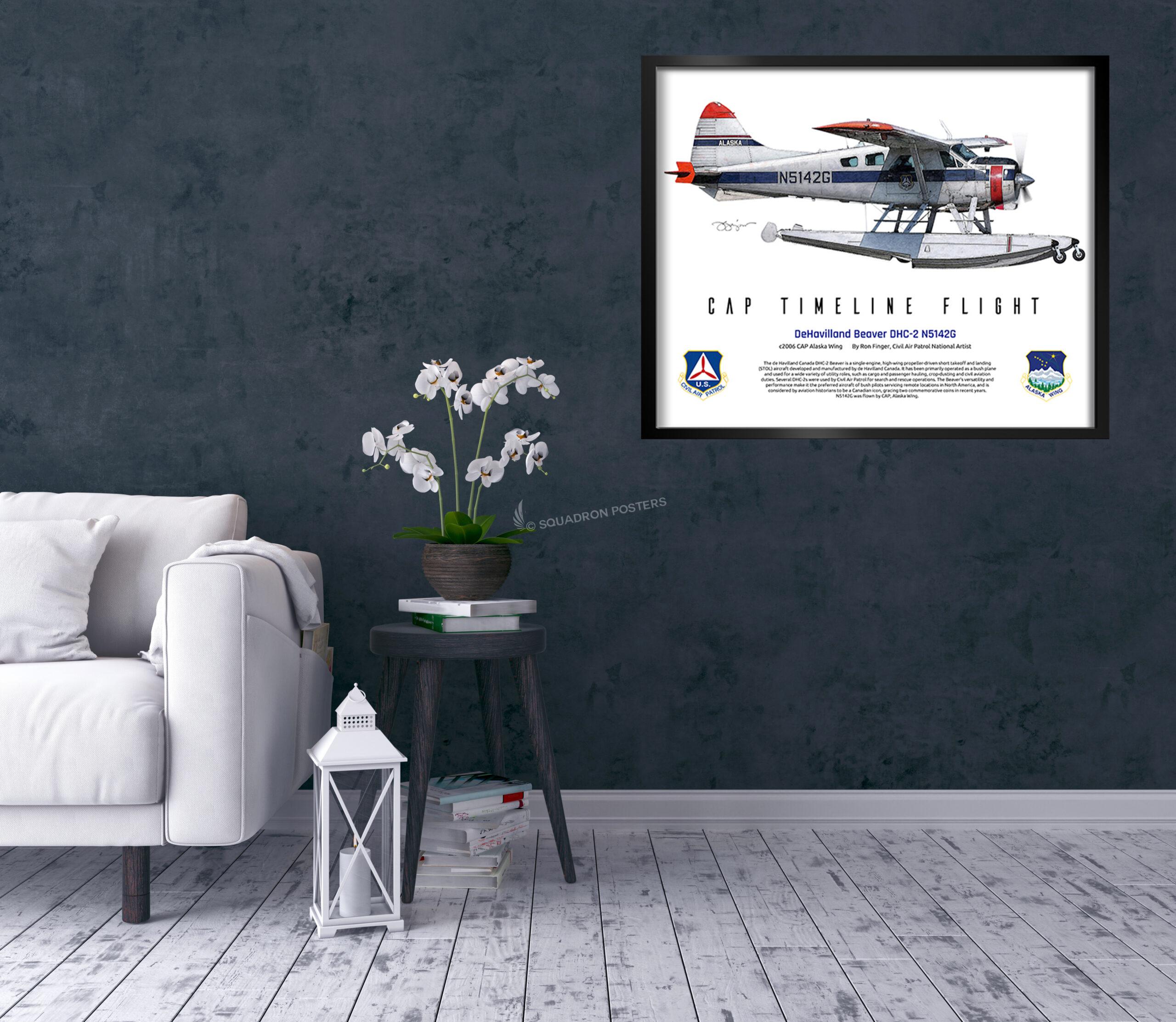 DeHavilland Beaver DHC 2 N5142G vintage style military aviation travel poster art by – Squadron Posters!