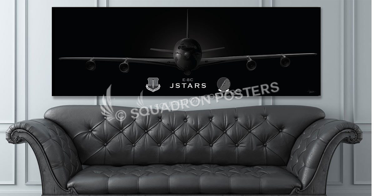 “E-8 16th ACCS Jet Black Super Wide Canvas Print” aviation art by – Squadron Posters!