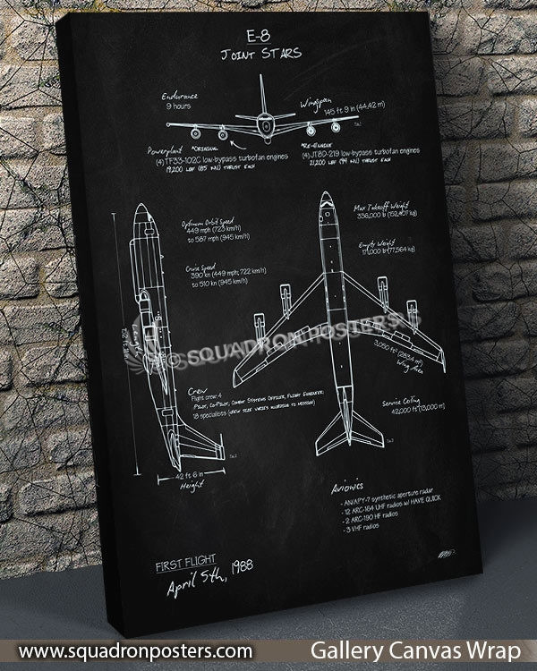 “E-8 JSTARS Blackboard Art “ military aviation blueprint art by – Squadron Posters!