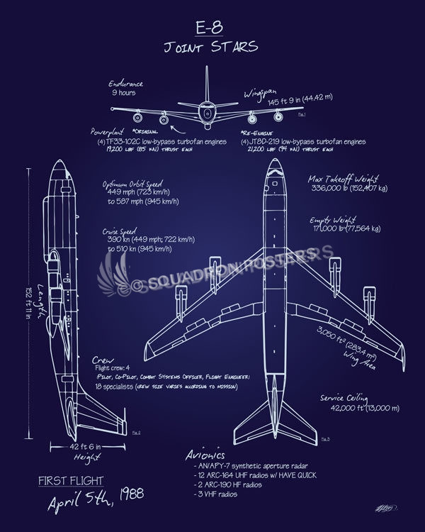 “E-8 JSTARS Blueprint Art “ military aviation blueprint art by – Squadron Posters!