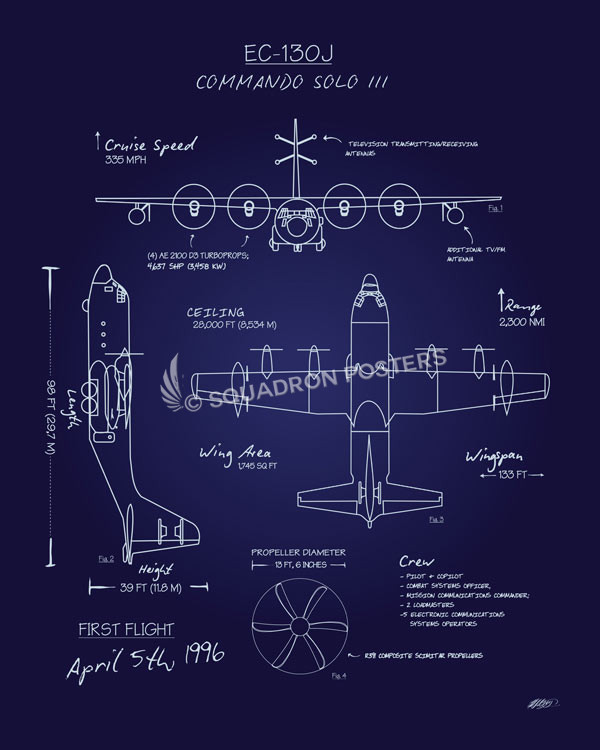 EC-130J Blueprint vintage style military aviation travel poster art by – Squadron Posters!