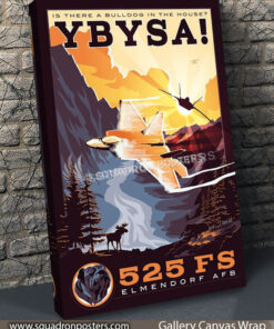 The 525 Fighter Squadron is an F-22 Raptor unit and part of the 3d Operations Group of the United States Air Force 3d Wing stationed at Elmendorf Air Force Base, Alaska. Their Raptors operate throughout the Pacific Region as part of Pacific Air Force Command. In addition, they fly the alert mission protecting the Alaskan ADIZ and routinely “intercept” Russian aircraft. They also routinely deploy to the desert and CENTCOM AOR providing critical fifth generation air dominance capability. Their 5-2-5 squadron mascot is the Bulldogs and they have a living, breathing Bulldog named “Blue” who lives at the squadron and goes wherever they go. Their motto: “Is there a Bulldog in the house? YBYSA!” (See more below)
