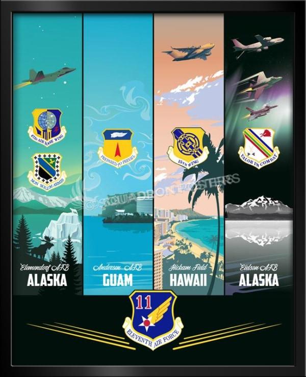 Elmendorf Guam Hickam Eielson 11th AF vintage style military aviation travel poster art by – Squadron Posters!