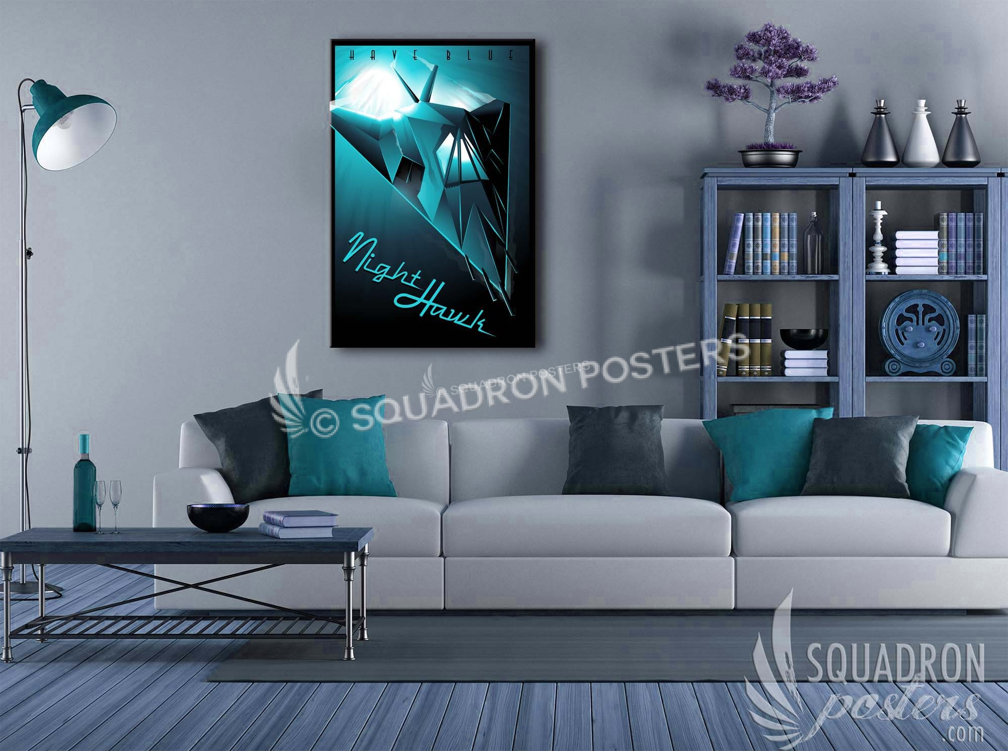 This vintage style military aviation travel poster “F-117 Nighthawk Shock Wave“ artwork is dedicated to all the hard working men and women who flew, maintained and supported the 1st operational stealth aircraft, the F-117 Nighthawk. Our “Shock Wave” series of military aviation poster artwork is a collection that showcases aircraft in a unique art deco style. We aim to make aircraft look like they’re ripping off the page with lightning speed! This is an exciting departure from your boring static side-profile aircraft prints on a white background and found only at – Squadron Posters! The F-117 Nighthawk is a single-seat, twin-engine stealth ground-attack aircraft formerly operated by the United States Air Force.