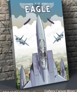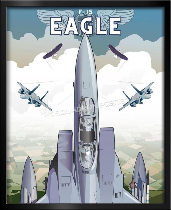 The Eagle has been exported to many countries, including Israel, Japan, and Saudi Arabia. Although the F-15 was originally envisioned as a pure air superiority fighter, its design included a secondary ground-attack capability that was largely unused. It proved flexible enough that an improved all-weather strike derivative, the F-15E Strike Eagle, was later developed, entered service in 1989 and has been exported to several nations. Several additional Eagle and Strike Eagle subvariant’s have been produced for foreign customers, with production of enhanced variants ongoing. Check out this stunning F-15 Eagle Through the Ages art by Squadron Posters!