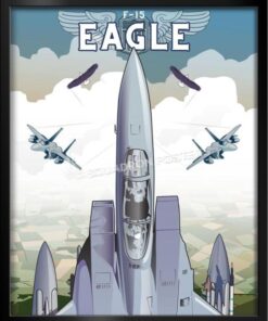 The Eagle has been exported to many countries, including Israel, Japan, and Saudi Arabia. Although the F-15 was originally envisioned as a pure air superiority fighter, its design included a secondary ground-attack capability that was largely unused. It proved flexible enough that an improved all-weather strike derivative, the F-15E Strike Eagle, was later developed, entered service in 1989 and has been exported to several nations. Several additional Eagle and Strike Eagle subvariant’s have been produced for foreign customers, with production of enhanced variants ongoing. Check out this stunning F-15 Eagle Through the Ages art by Squadron Posters!
