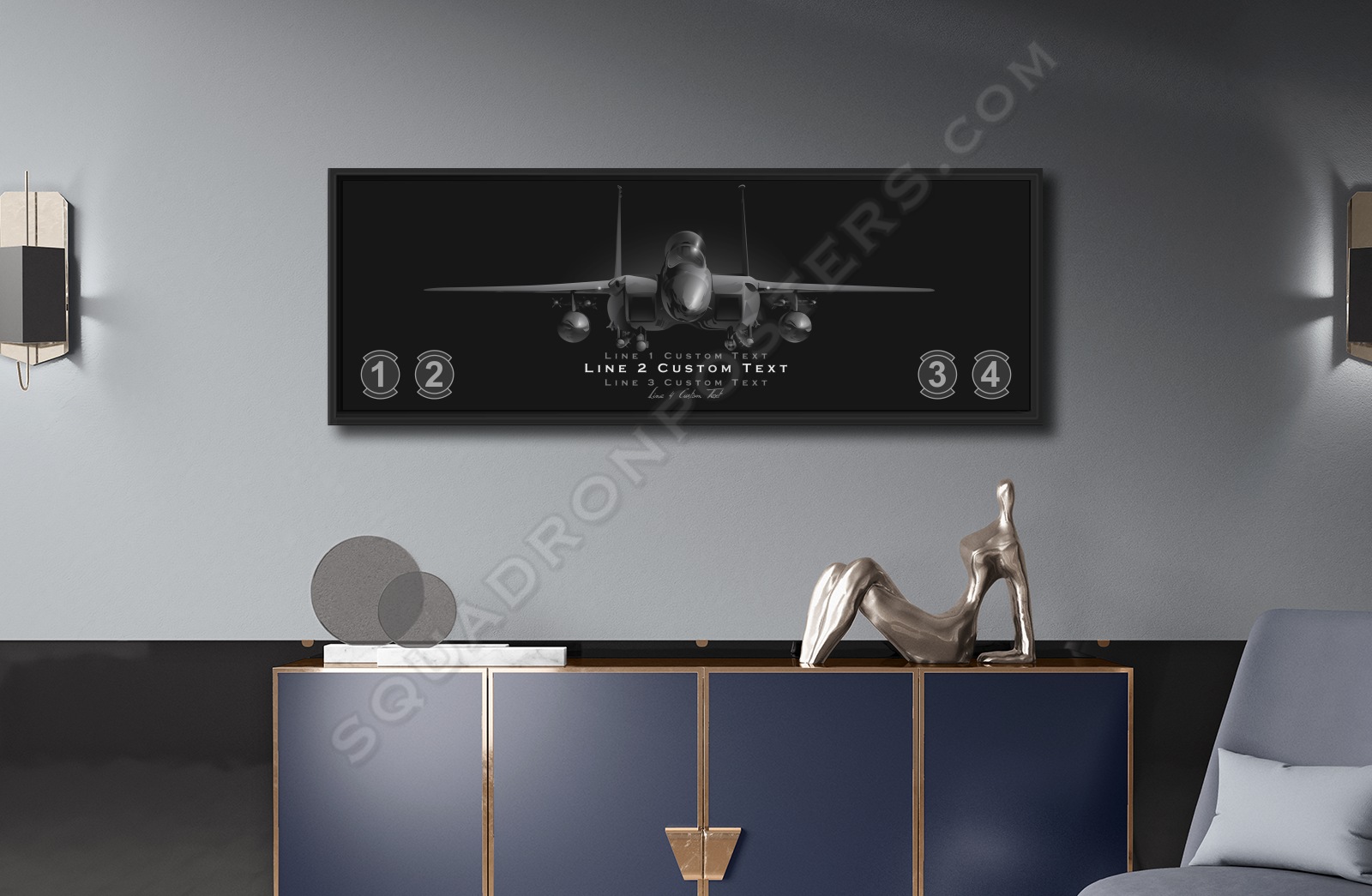 F-15E Strike Eagle Personalized Jet Black Lithograph Canvas Wrap on a floating frame.