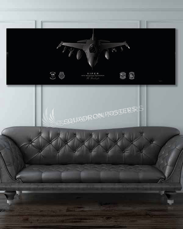 “F-16 16th Weapons Squadron (With USAF Fighter Weapons School Patch) Jet Black Super Wide Canvas Print” found exclusively at – Squadron Posters – Jet Black Series!