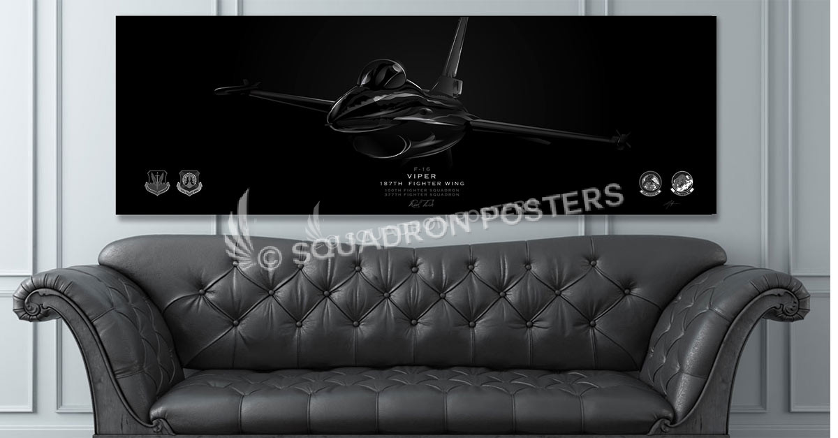 “F-16 187th FW Jet Black Super Wide Canvas Print” by – Squadron Posters!