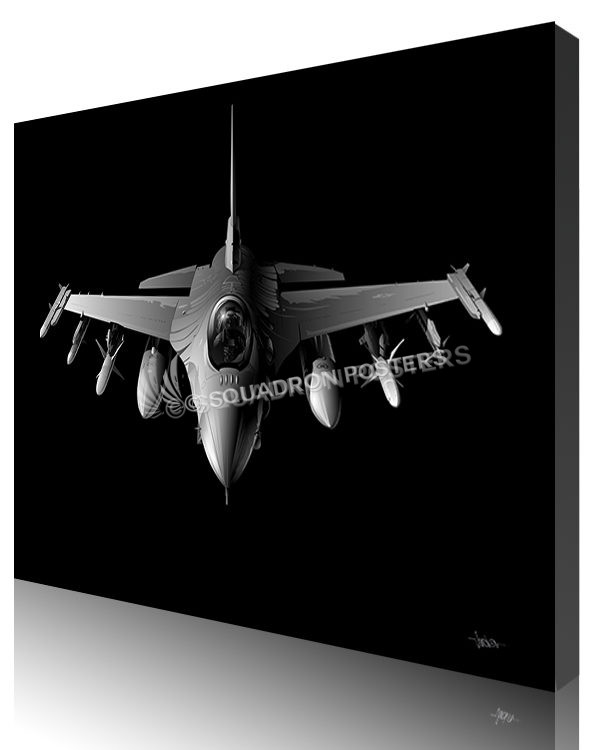 “F-16 Jet Black Lithograph” military aviation poster art by – Squadron Posters!