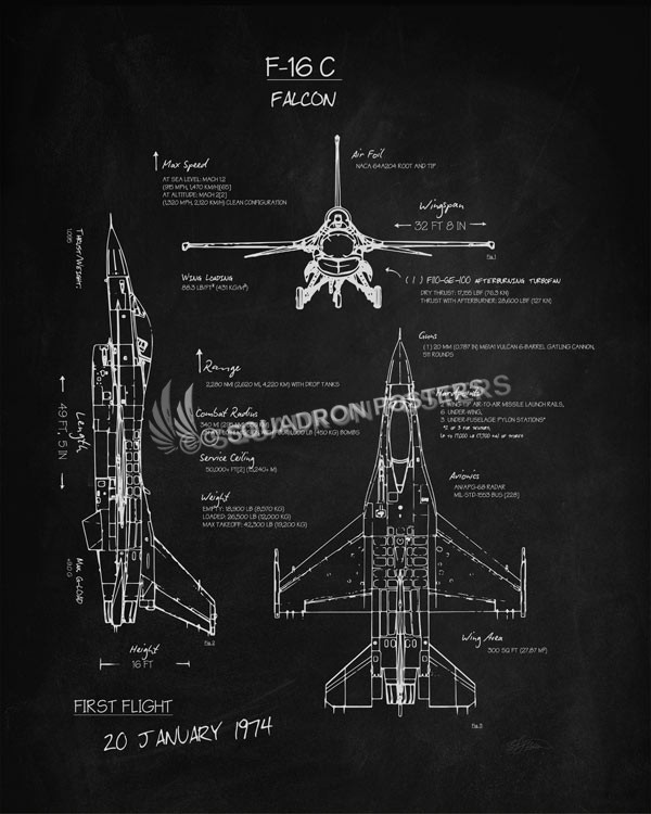 F-16c Fighting Falcon Blackboard Art.
