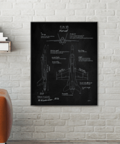 “F-18 Hornet Blackboard” military aviation blueprint art by – Squadron Posters!