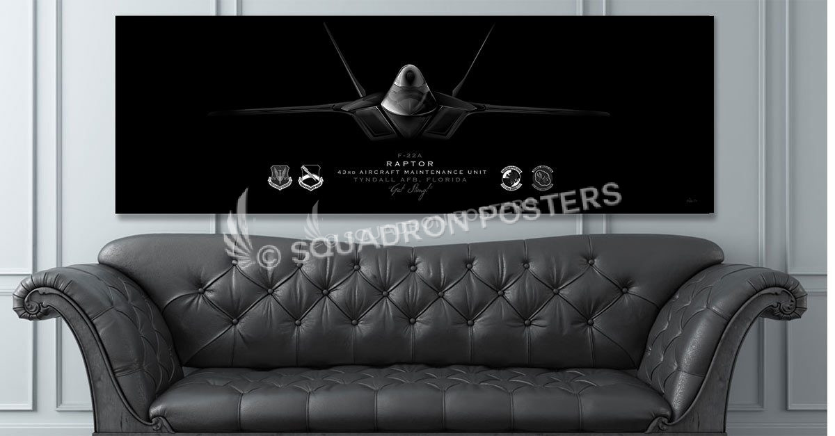 “F-22 43d AMU Jet Black Super Wide Canvas Print” by – “Squadron Posters”!