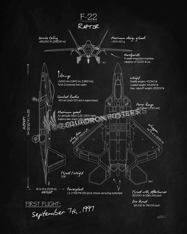 This vintage style military aviation “F-22 Blackboard Art” is dedicated to all the hard working men and women who fly, maintain and support the F-22 Raptor.